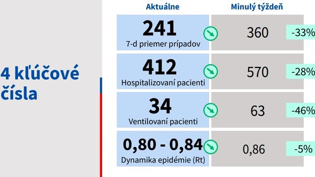 "Máme menej ako 250 prípadov denne, iba 34 pacientov na umelej pľúcnej ventilácii. Aj v okolitých krajinách sa situácia zlepšuje, sú na vyrovnanej úrovni, je to veľmi pozitívna správa. Prijímame menej ako 25 pacientov denne do nemocníc, stav v nemocniciach sa znižuje a dostávajú sa do komfortnejšej situácie," uviedol Matej Mišík, riaditeľ Inštitútu zdravotných analýz.