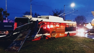 Nehoda trolejbusu v Banskej Bystrici: Účastníkom bolo aj smetiarske auto, zranených je sedem ľudí