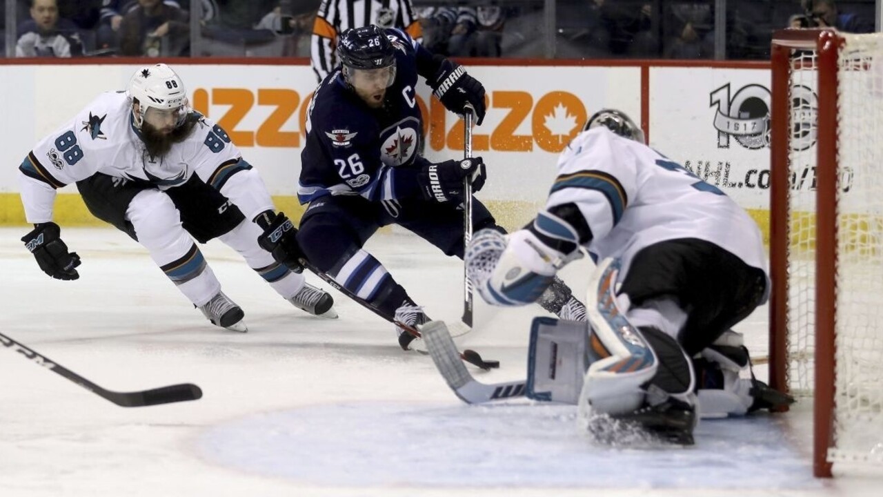 Góly: 12. Morrissey, 60. Scheifele (Ehlers, Laine) - 10. Pavelski (M. Karlsson, Dillon), 48. Bödker (Couture), 60. Pavelski (Vlasic, J. Thornton) Marko Daňo (Winnipeg) 11:05 min, 2 strely, 4 "hity", -1 bod