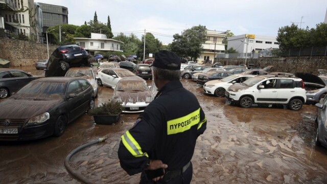 Na otvorenom parkovisku v meste Marusi na predmestí Atén vytvorila náhla smršť rozbahnené jazierko vody, v ktorom plávali odstavené autá. Hasiči kontrolovali, či v nich neostali uväznení aj miestni obyvatelia.