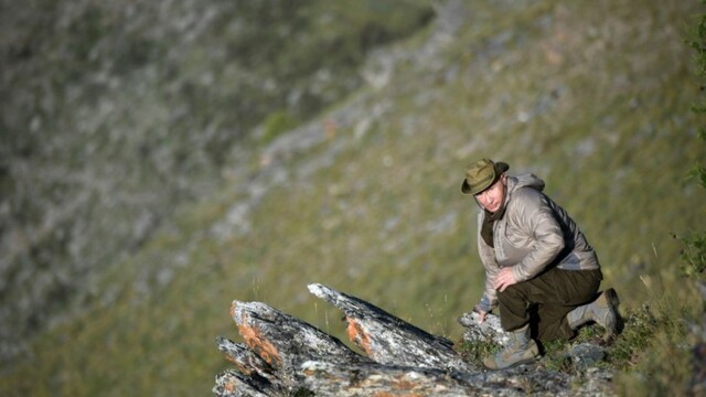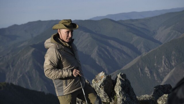 Putin na nich tento raz nepózuje na koni či pri love rýb bez trička, ako to robil po minulé roky. Namiesto toho chodí 65 ročný prezident v decentnom khaki oblečení a klobúku s ďalekohľadom i trekingovými palicami na túry po horách, plaví sa po rieke Jenisej a obdivuje krásy prírody Tuvianskej republiky na juhu Sibíri.