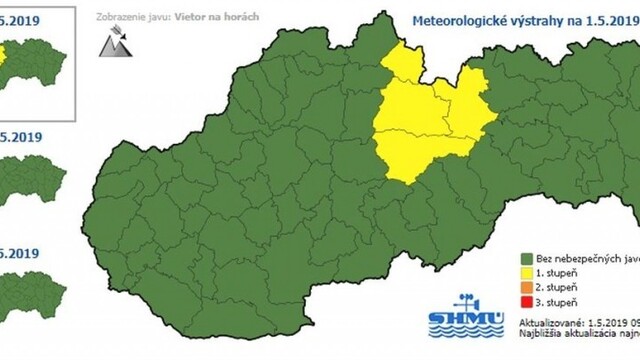 Meteorológovia tiež varujú pred silným vetrom v okrese Poprad a vetrom na horách v okresoch Poprad, Liptovský Mikuláš, Brezno a Tvrdošín. V Popradskom okrese môže vietor v nárazoch dosiahnuť rýchlosť do 75 kilometrov za hodinu, na horách do 125 kilometrov za hodinu.
