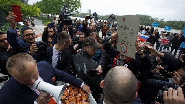 Fotogaléria: Proti Le Penovej v Bratislave protestovali desiatky ľudí