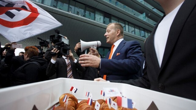 Niekoľko desiatok zhromaždených pred bratislavským hotelom vyjadrilo svoj nesúhlas s prítomnosťou Marine Le Penovej a ďalších nacionalistických politikov na tamojšej konferencii. Účastníci zhromaždenia niesli transparenty ako "Neprejdú!", "Sloboda je viac než národ", "I love Europe" alebo zástavy s preškrtnutou svastikou.