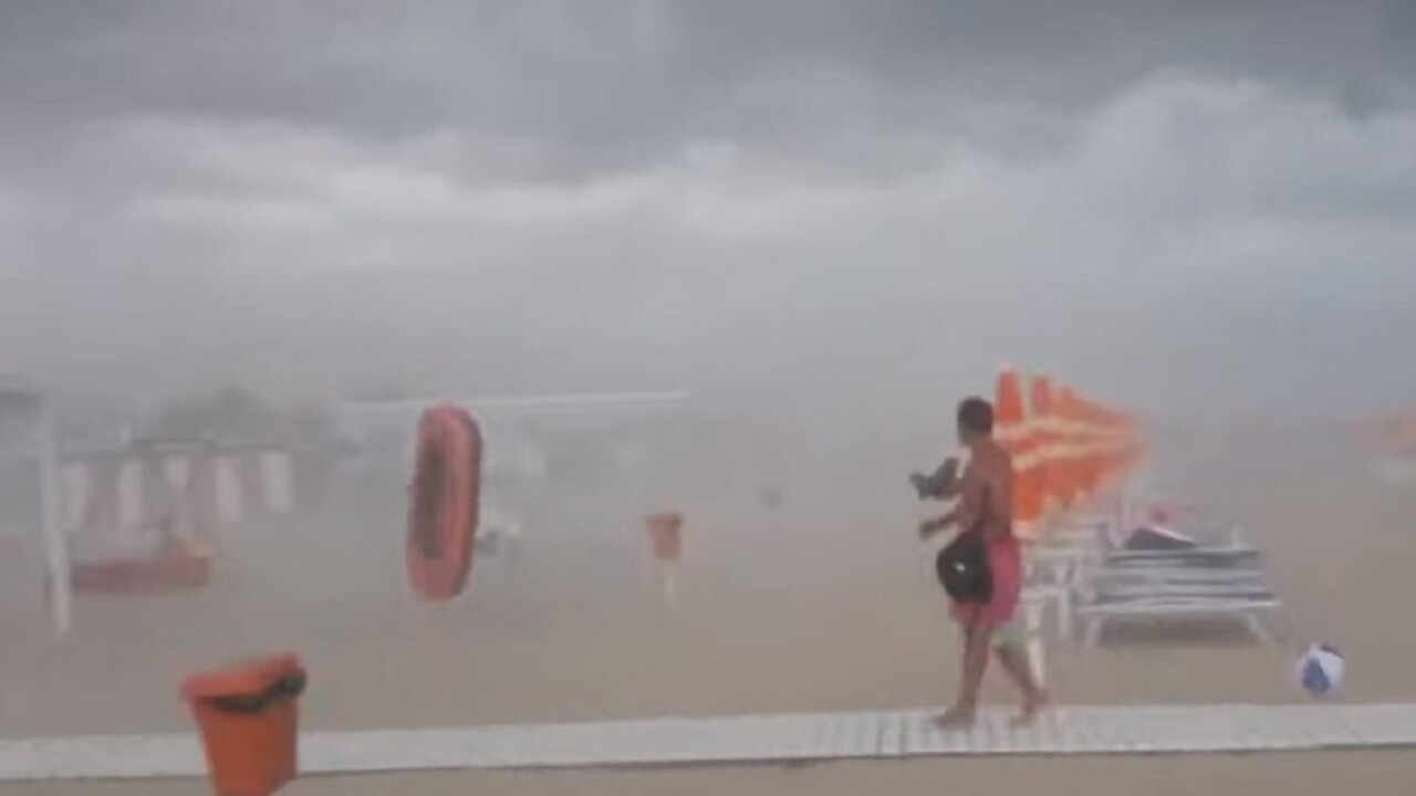 Zverejnené videozábery ukazujú jednu z pláží v Abruzzoch s temnými mračnami a ľuďmi utekajúcimi do bezpečia v silnom vetre. Podľa správy ANSA padali v Pescare krúpy "veľké ako pomaranče".