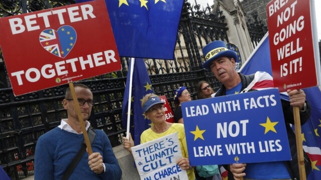 V súčasnom kolotoči udalostí okolo brexitu sa podľa agentúr črtajú tri hlavné scenáre, a to odklad brexitu, odchod Británie z Európskej únie s dohodou alebo zrušenie úsilia o brexit. Po súhlase kráľovnej začal platiť zákon, ktorý má znemožniť brexit bez dohody. Poslanci odmietli návrhy premiéra Borisa Johnsona na usporiadanie predčasných volieb a parlament je pozastavený.
