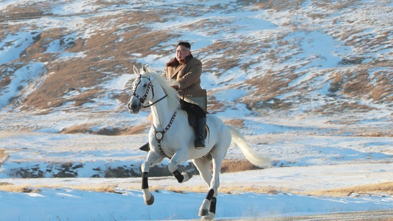 Severokórejský vodca Kim Čong-un sa nechal vyfotiť, ako jazdí na bielom koni na hore Pektusan, ktorú považujú za posvätnú obyvatelia oboch častí rozdeleného Kórejského polostrova.
