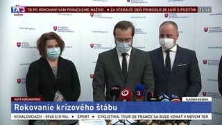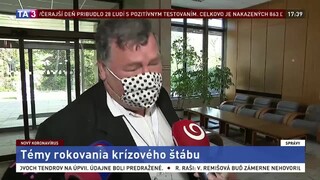 16:31 Opäť rokuje ústredný krízový štáb. Premiér Igor Matovič pred začiatkom zasadnutia povedal, že prichádza s veľmi vážnymi opatreniami. Podrobnejšie informácie má Lenka Ježová.