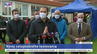 9:53 "K 9:00 je kompletných 97,2% odberových tímov," informoval na Facebooku Igor Matovič a dodal, že "každý, kto sa chce testovania zúčastniť, sa určite na rad dostane".
