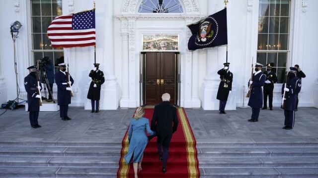 Po skrátenej jazde s prezidentskou eskortou ulicami Washingtonu, ktoré boli v dôsledku opatrení súvisiacich s bezpečnosťou i pandémiou koronavírusu takmer prázdne, prešiel prezidentský pár posledné metre k hlavnému vstupu do Bieleho domu pešo."Je to pocit, akoby som išiel domov," povedal Biden reportérovi televízie NBC News. Krátko na to do Bieleho domu prišla aj viceprezidentka Kamala Harrisová, prvá žena na tomto poste v USA.