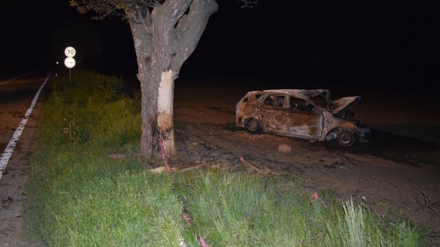 Tragická nehoda. Auto po náraze do stromu zhorelo, vodič zahynul