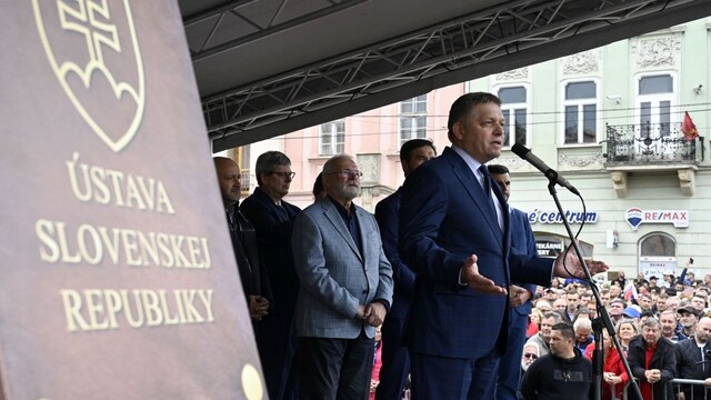 "Som posledný aktívny politik na Slovensku, ktorý bol pri prijímaní ústavy v roku 1992, takže mám k tejto ústave určitý vzťah a nikdy v moderných dejinách nebola tak ústava poručovaná a pošliapaná, ako je to v súčasnosti touto vládou," povedal na proteste predseda Smeru-SD Robert Fico.