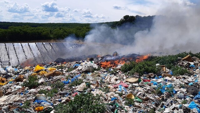 FOTO: Horela skládka odpadu pri Topoľčanoch, na mieste zasiahli hasiči