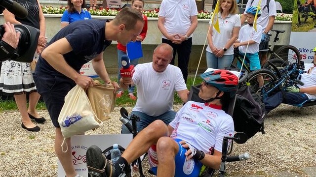 V sobotu bicyklovali aj fyzioterapeuti Hendicentra v Piešťanoch, ktorí sa v cieli rozhodli Petrovi darovať trojtýždňový rehabilitačný pobyt, aby tak mohol po náročnom týdžni zregenerovať a znovu nabrať sily. "Veľká vďaka. Roky pribúdajú a ak máme bicyklovať ďalej, tak aj ja potrebujem trochu regenerovať," ďakoval v cieli Peter Káčer.