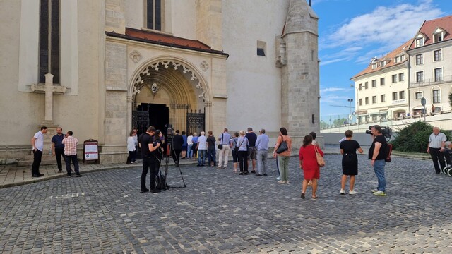 11:41 Pred katedrálou stále čaká veľké množstvo ľudí. Po 12:00 však vstup pre verejnosť už nebude možný, pretože sa začne svätá omša.