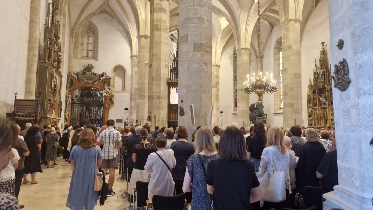 9:55 Aktuálne sa rad návštevníkov ťahá až von pred katedrálu.