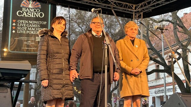17:13 Na zhromaždenie v hlavnom meste prišli aj rodičia Jána a Martiny. Dav ich víta dlhým potleskom. Jánov otec všetkých žiada, aby slušnosť na Slovensku zvíťazila. "Aby sme k sebe boli tolerantní, aby si každý vykonával prácu tak, ako sa má," povedal.