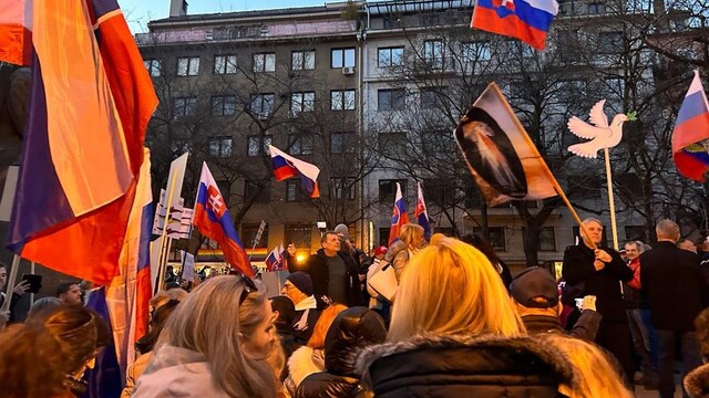 V Bratislave sa stretli prívrženci dvoch skupín, ktoré majú odlišný názor na vojenský konflikt na Ukrajine. Prvá organizuje protestné zhromaždenia pod názvom Pochod za skutočný mier. V druhej skupine sú ľudia, ktorí za hlavného vinníka situácie na Ukrajine považujú Rusko. Atmosféru pred americkou ambasádou nám priblížili Veronika Pancuráková a Vladyslav Yatskovyi.