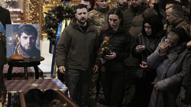FOTO: V Kyjeve pochovali vojaka Da Vinciho. Na pohreb prišli Zelenskyj aj fínska premiérka