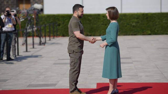 Ukrajinský prezident Volodymyr Zelenskyj dnes ráno prišiel na summit lídrov Európskeho politického spoločenstva, ktorý sa koná v Moldavsku. Na červenom koberci ho pred zámkom Mimi pri Kišiňove privítala moldavská prezidentka Maia Sanduová.