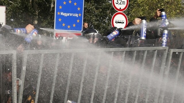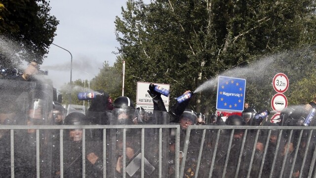 Príslušníci zásahovej jednotky maďarskej polície proti nim použili slzotvorný plyn a nasadili aj vodné delo, informoval denník Blikk.