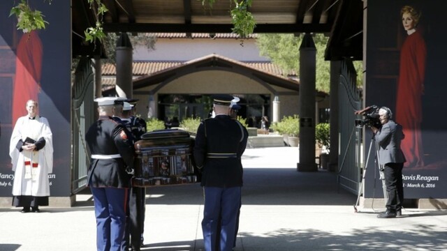 USA sa lúčia s bývalou prvou dámou Nancy Reaganovou. Rakvu s jej pozostatkami previezli z jej domu v Santa Monike, do Simi Valley v Kalifornii.