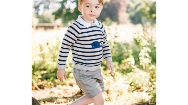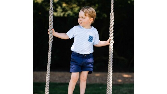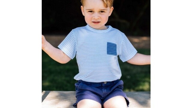 Princa, ktorý je po svojom dedovi a otcovi tretí v nástupníckej línii na trón, zobrazujú, ako sa hrá na hojdačke, a s rodinným maznáčikom psom Lupom, ktorému ponúka svoju zmrzlinu, informovala agentúra AP.