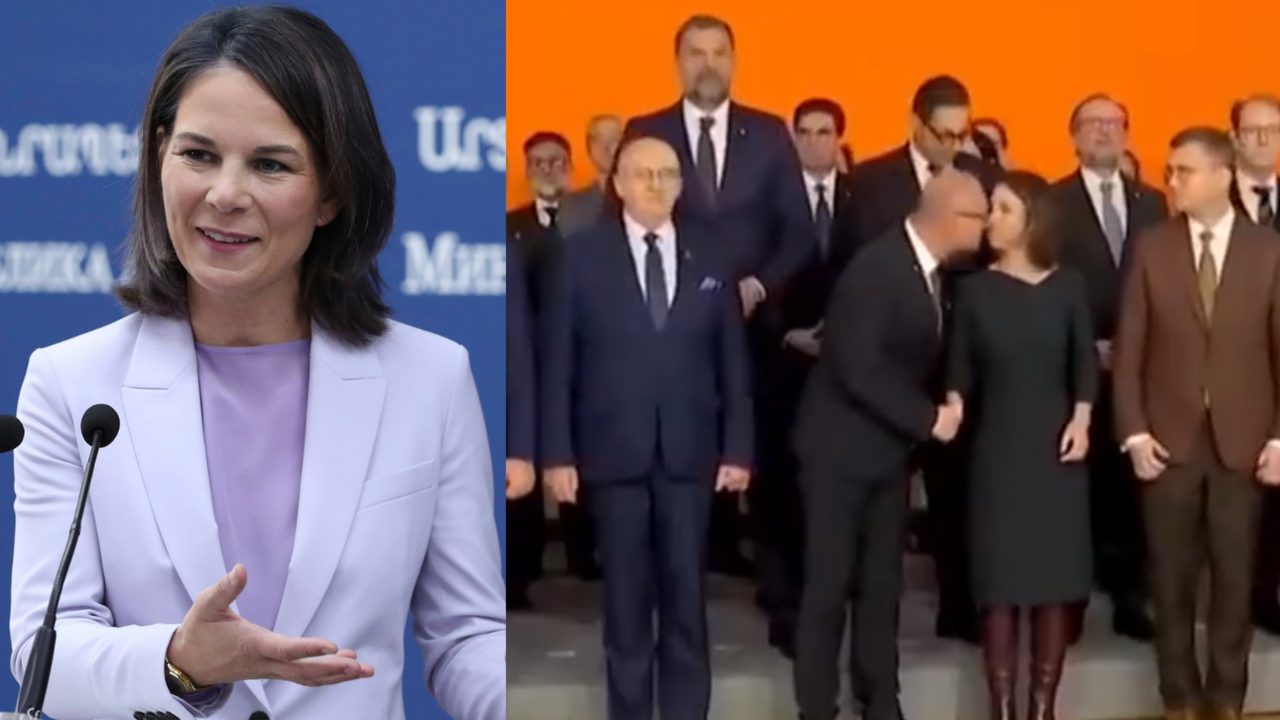 Na záberoch je vidieť, ako šéf chorvátskej diplomacie potriasa Baerbockovej rukou a potom sa k nej nakláňa zrejme preto, aby ju pobozkal na ústa. Nemecká ministerka ale otočí hlavou, takže sa nakoniec o ňu len utrie tvárou.