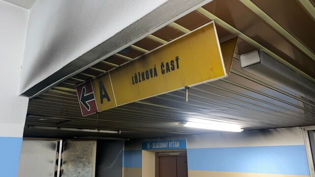 Chodba nemocnice po požiari a evakuácii pacientov