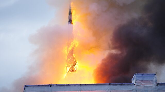Požiar, ktorý začal v strešnej časti budovy, sa rozšíril na väčšinu objektu a časti strechy sa prepadli, povedal podľa agentúry AP hovorca hasičov Jakob Vedsted Andersen. "Hasenie je veľmi zložité," dodal a upozornil pritom, že do niektorých častí budovy nemohli hasiči vstúpiť, pretože to bolo príliš nebezpečné.