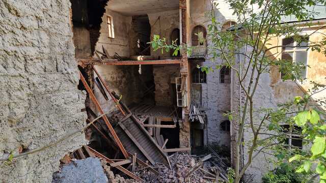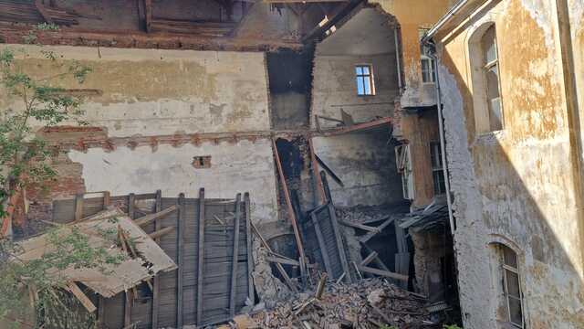 Zrútená budova bývalého evanjelického lýcea v Banskej Štiavnici