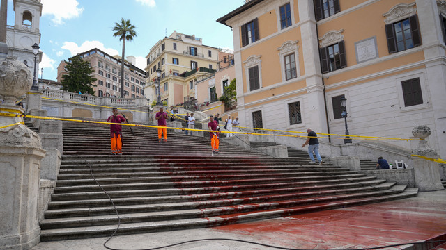 Po akcii v Ríme zasiahla polícia a zapísala si osobné údaje aktivistiek. Mestské služby následne schodisko, ktoré patrí medzi najznámejšie pamätihodnosti talianskej metropoly, očistili. Počas upratovania bola časť schodov uzavretá. Podľa DPA šlo farbu ľahko odstrániť.