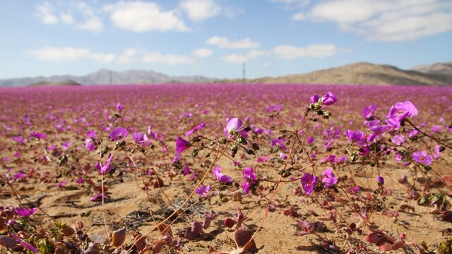 Púť Atacama v Čile tento rok rozkvitla v nezvyčajnom termíne. Zvyčajne púšť rozkvitne raz za niekoľko rokov v septembri a októbri. Tento rok sa tak stalo v júli vďaka nezvyčajne vysokým zrážkam, píše agentúra AFP.