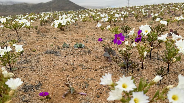 🇨🇱 Die Atacama-Wüste im Norden Chiles ist mit einem bunten Teppich aus weißen und violetten Blumen bedeckt, - die Folge von starken Regenfällen und nicht nur die Atacama Wüste blüht, auch in Saudi Arabien, Oman sowie pic.twitter.com/W3FQynVvk1