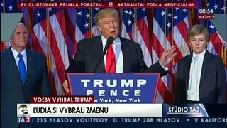9:10 Novozvolený prezident Donald Trump v prvom prejave ku svojim priaznivcom pochválil súperku Hillary Clintonovú za "húževnatú kampaň" a vyzval k jednote republikánov a demokratov.