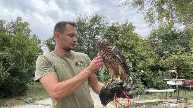 Roman Čajkovič z Biologickej ochrany Letiska M. R. Štefánika predstavil tiež štvormesačnú samicu sokola sťahovavého, ktorú využívajú na lov.