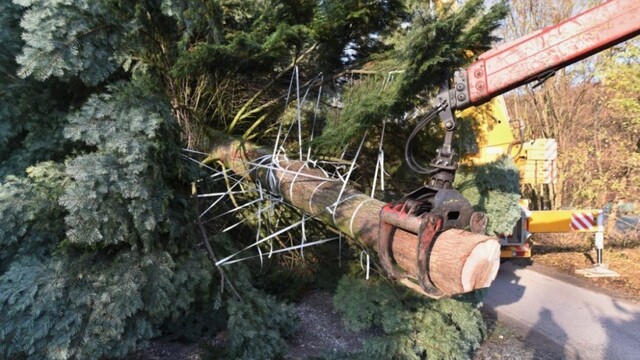 V Malých Karpatoch vyťali 22-metrový strom, skrášli vianočný Brusel