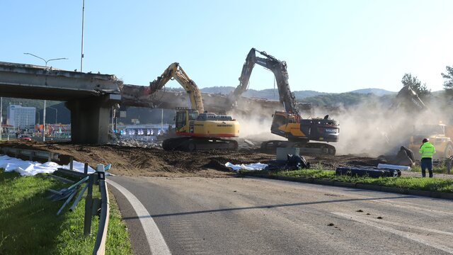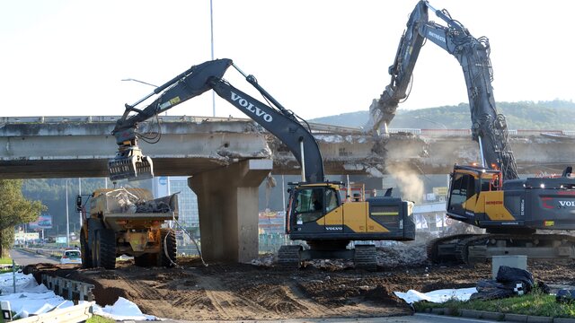 Dodala, že v sobotu (21. 9.) v nočných hodinách sa podarilo odstrániť aj krajnú časť mosta a druhý pilier mostnej konštrukcie.
