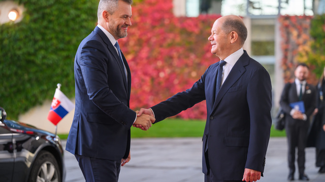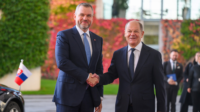 Pellegrini, ktorý sa ujal prezidentského úradu v polovici júna, dnes zavítal do Berlína na nástupnú návštevu. Nemecko je kľúčovým obchodným partnerom Slovenska. Okrem Scholza sa stretol aj s prezidentom Frankom-Walterom Steinmeierom, ktorý ho prijal v zámku Bellevue s vojenskými poctami. Ani v prípade stretnutia so Scholzom, ani so Steinmeierom nebolo na programe spoločné vyjadrenie pre tlač, čo nemeckojazyčná mutácia webu Politico označila za "nápadné" a dala to do súvislosti s tým, čo označila ako ostrú zákrutu strany Hlas-sociálna demokracia (Hlas-SD) doprava. Pellegrini bol donedávna predsedom Hlasu-SD.