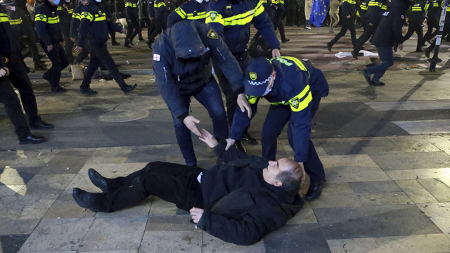 Portál Civil.ge uvádza, že polícia pokojných demonštrantov najprv rozháňala a potom ich na inom mieste začala zatýkať. Rádio Slobodná Európa/ Rádio Sloboda (RFE / RL) v pondelok napísalo, že proúnijní demonštranti postavili v centre Tbilisi stany a vyhlásili, že neustúpia, kým nebudú nové parlamentné voľby.