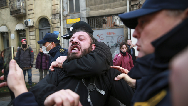 Portál Civil.ge píše, že polícia začala zatýkať pokojných demonštrantov, ktorých pred tým vyhnala z iného miesta, a hlásených je asi desať zranených. Predtým - v skorých ranných hodinách - podľa rovnakého zdroja príslušníci bezpečnostných zložiek začali demonštrantov rozhadzovať a rozobrali ich stany.