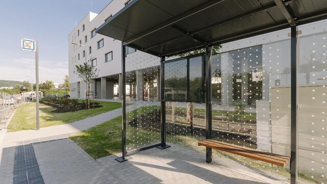 - nová zastávka MHD priamo pred projektom, na ktorej už premáva linka autobusu.