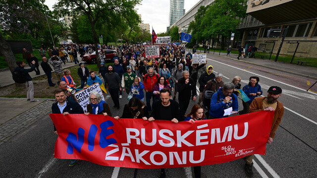 Účastníci verejne vyzvali prezidenta Petra Pellegriniho, aby tzv. „ruský zákon“ nepodpísal.