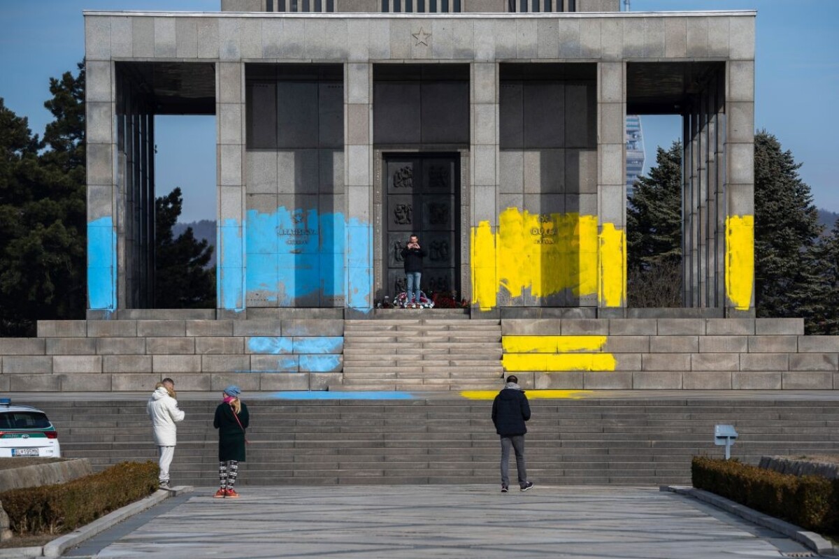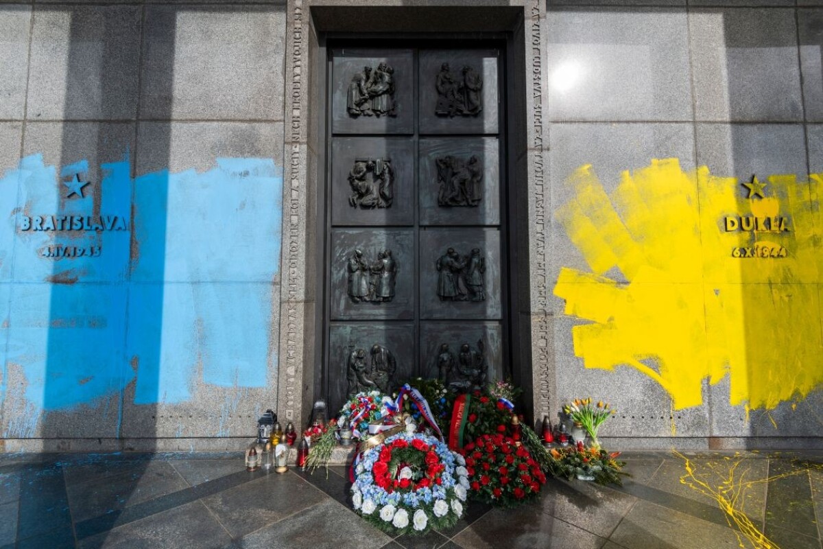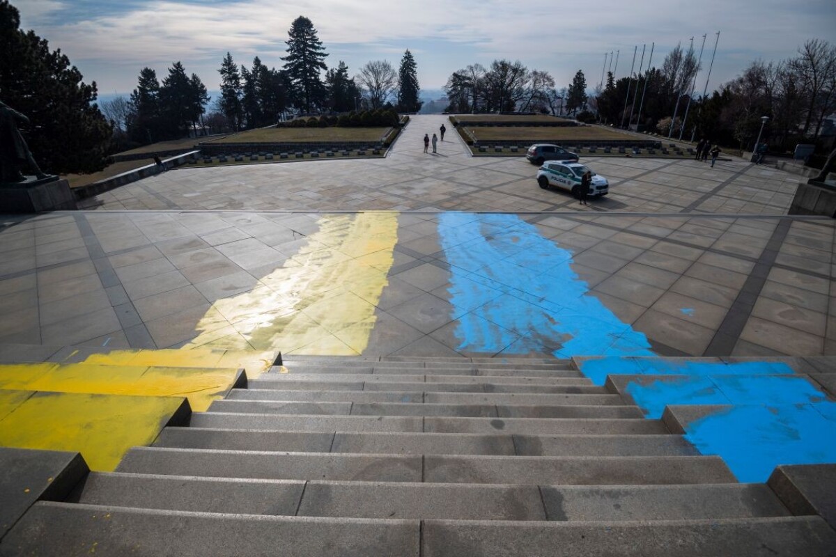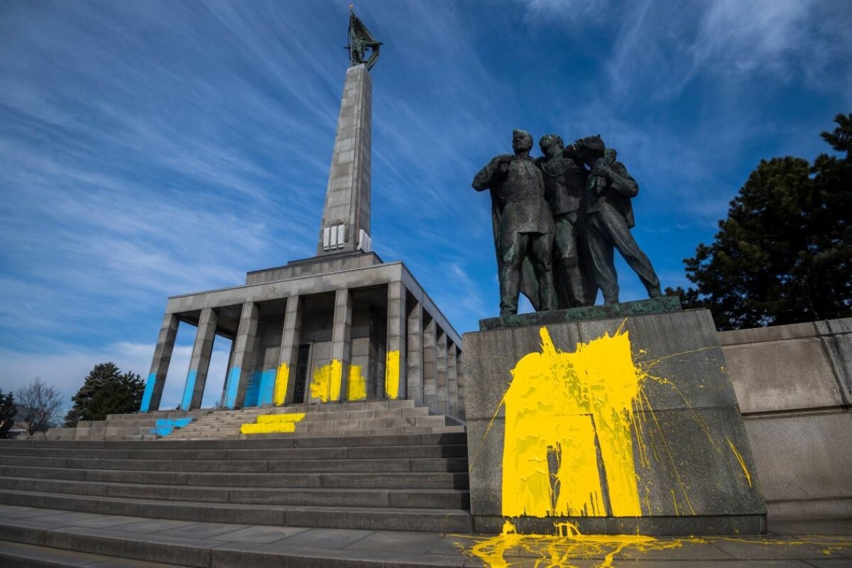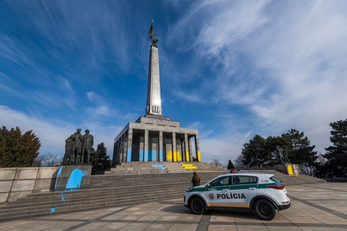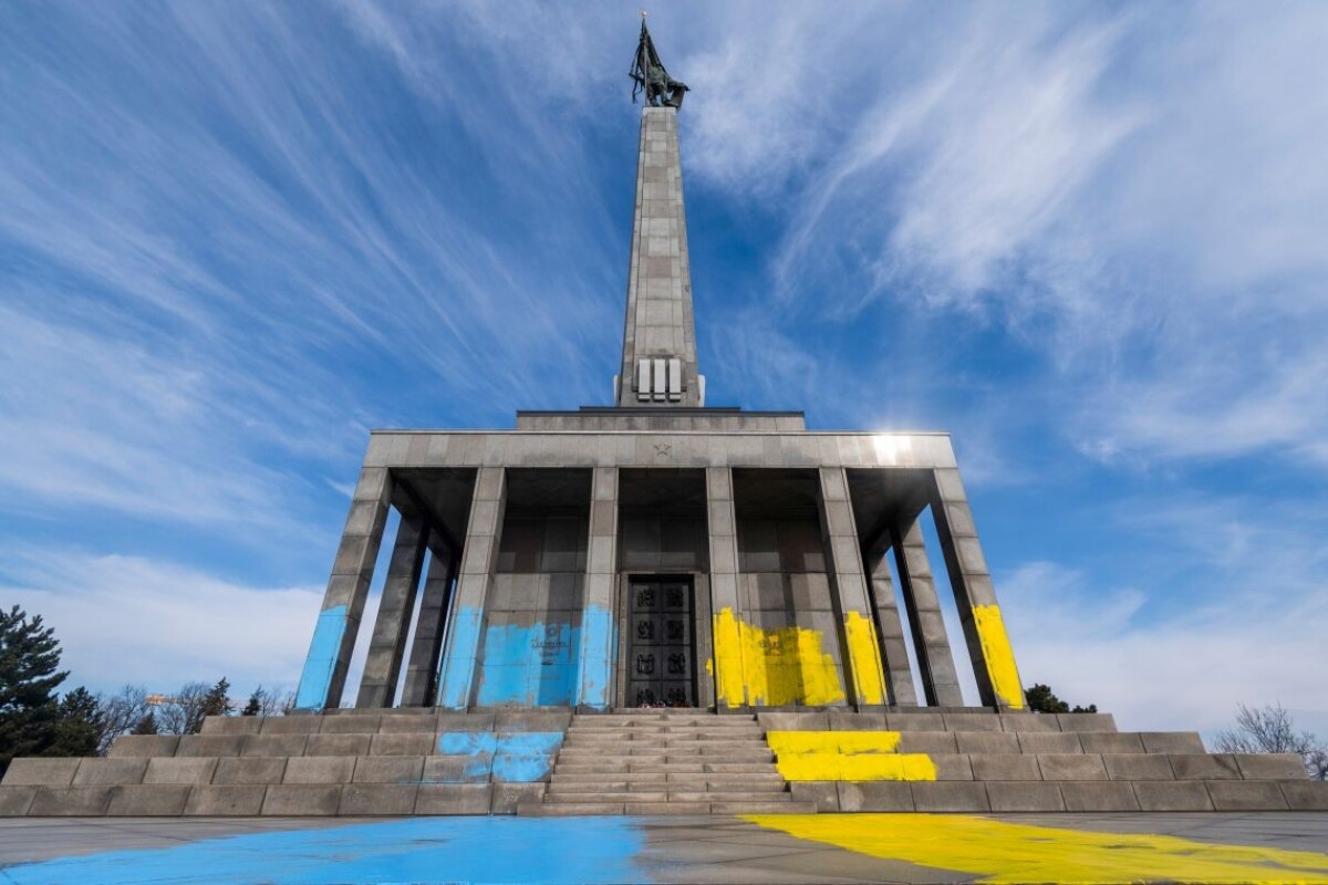 Pamätník Slavín natreli ukrajinskými národnými farbami. Polícia to vyšetruje
