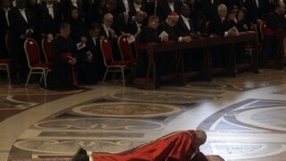 Pápež sa poležiačky modlil na pamiatku umučenia Krista